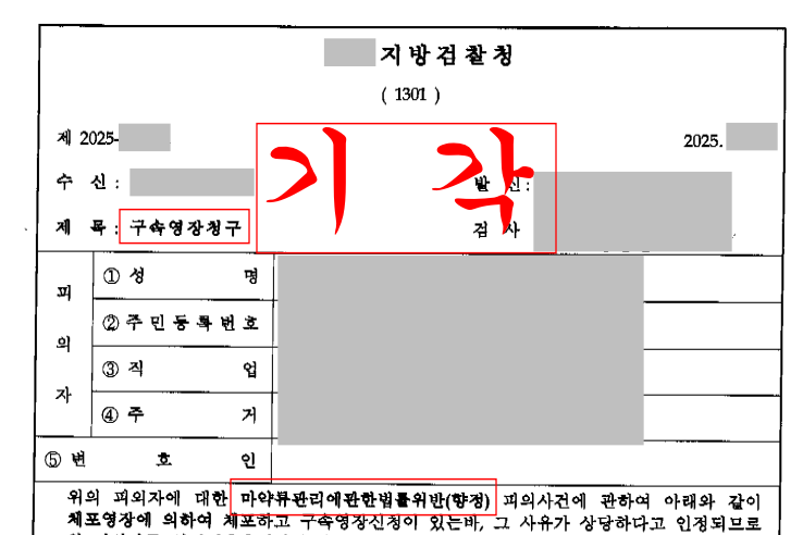 형사 마약류(필론폰) 투약행위자 구속영장 청구 기각시킨 사례